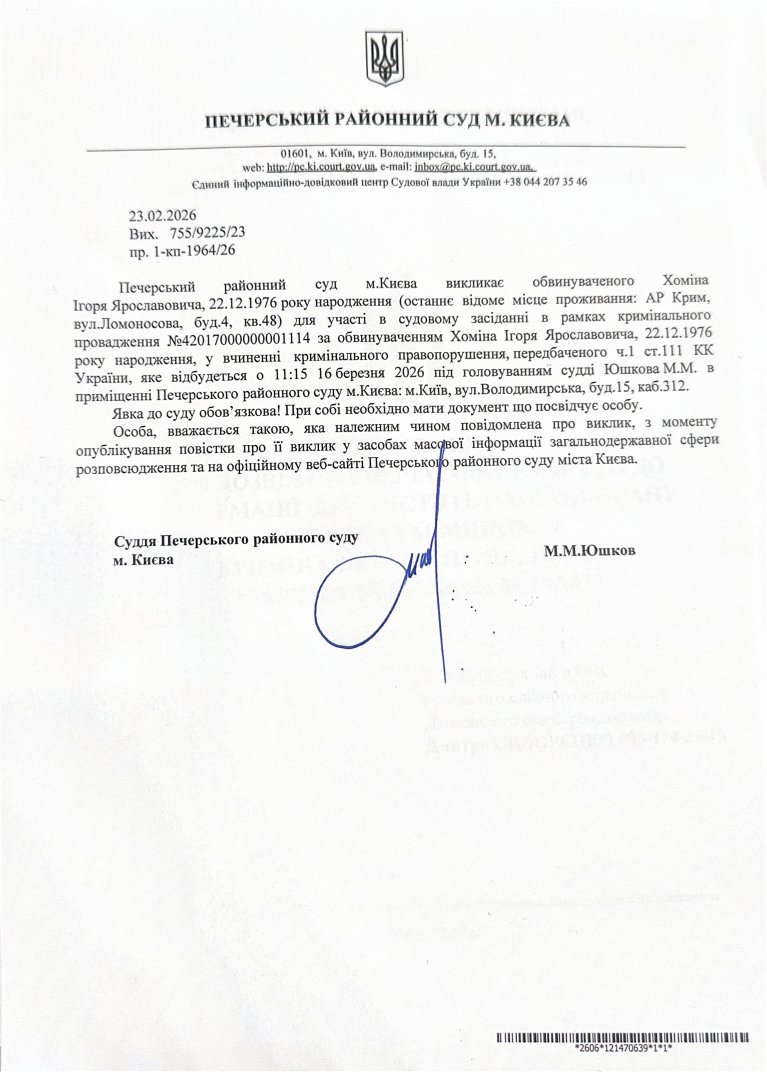 Оголошення про виклик особи в суд та повідомлення про судове рішення